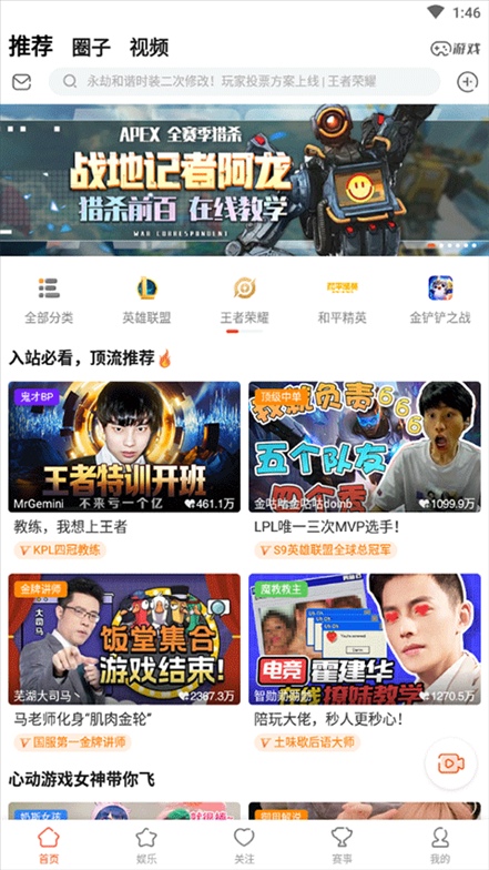 荒岛特训、炉石传说等专业游戏直播,你想看的统统都有。