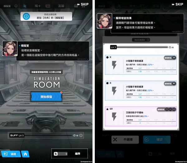 模拟室可针对不同情况进行训练,获得限定增益效果,帮助玩家在战斗中取得更好成绩。