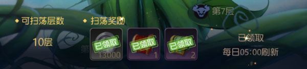 每通关一层都会积累奖励,扫荡已通关的层数能够获得更多的奖励。